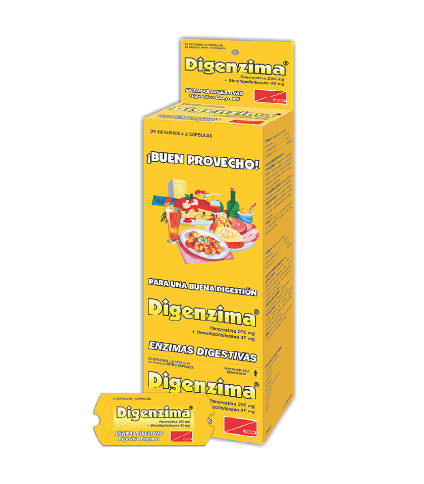 Enzimas digestivas con acción antiflatulenta (gases o sensación de plenitud)