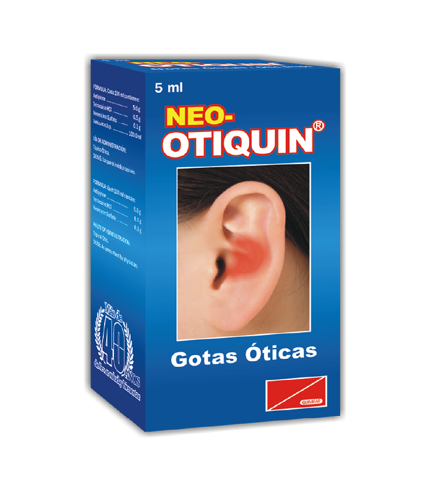 Triple fórmula que combina acción analgésica, antibiótica y anestésica para el oído.